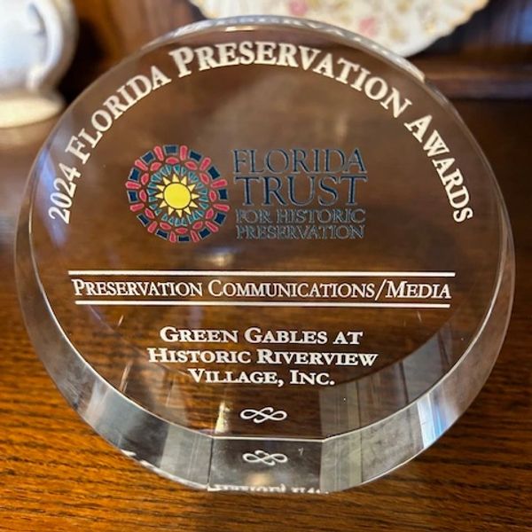 In 2024 the Florida Trust for Historic Preservation in Tallahassee presented Green Gables with their prestigious Florida Preservation Award in the category of Communications & Media. We were honored for our outstanding heritage education program, documentaries, brochures, website, Facebook page, newsletter, and many publications and short films.