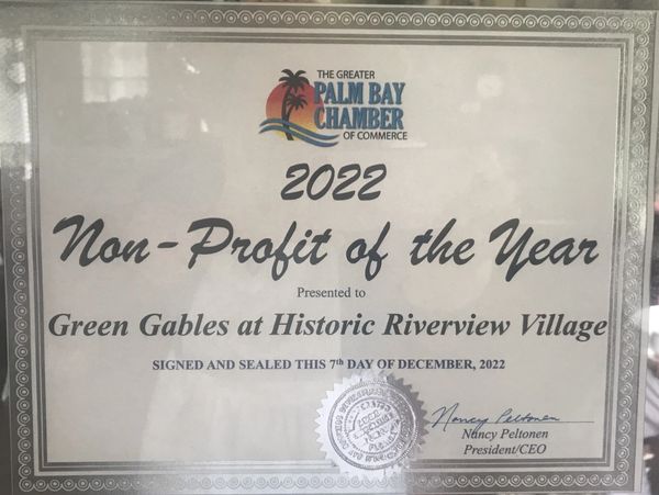 In December of 2002 the City of Palm Bay's Chamber of Commerce recognized Green Gables with their Non-Profit of the Year Award. Green Gables has been an active and supportive member of the Palm Bay Chamber of Commerce for many years.